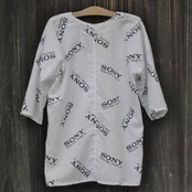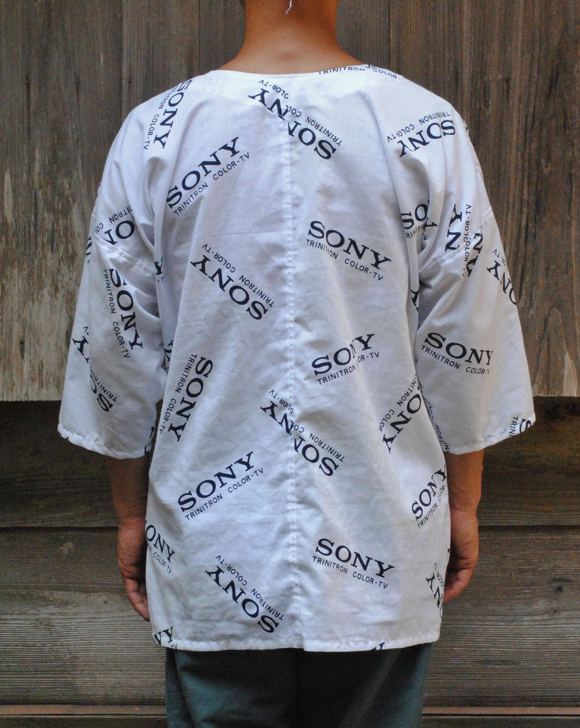 ランダムにプリントされた SONY TRINITRON COLOR-TV の文字柄が個性的で、
