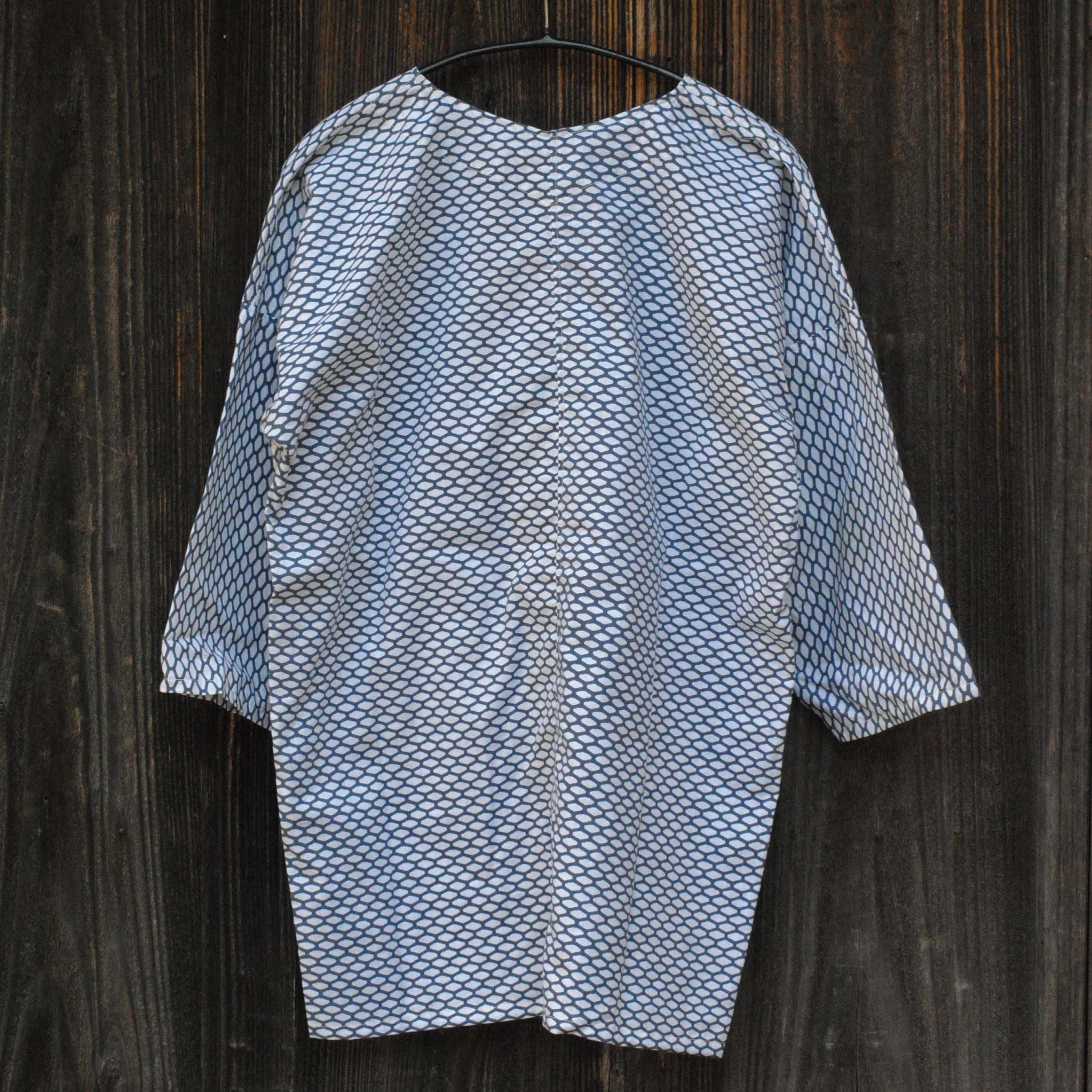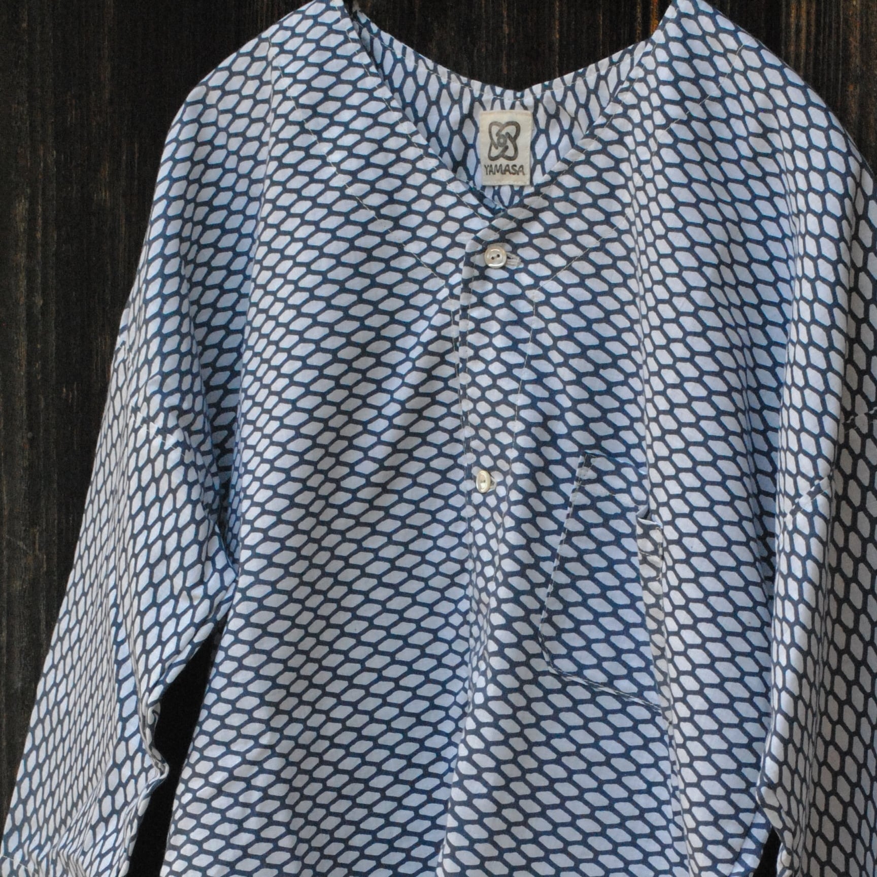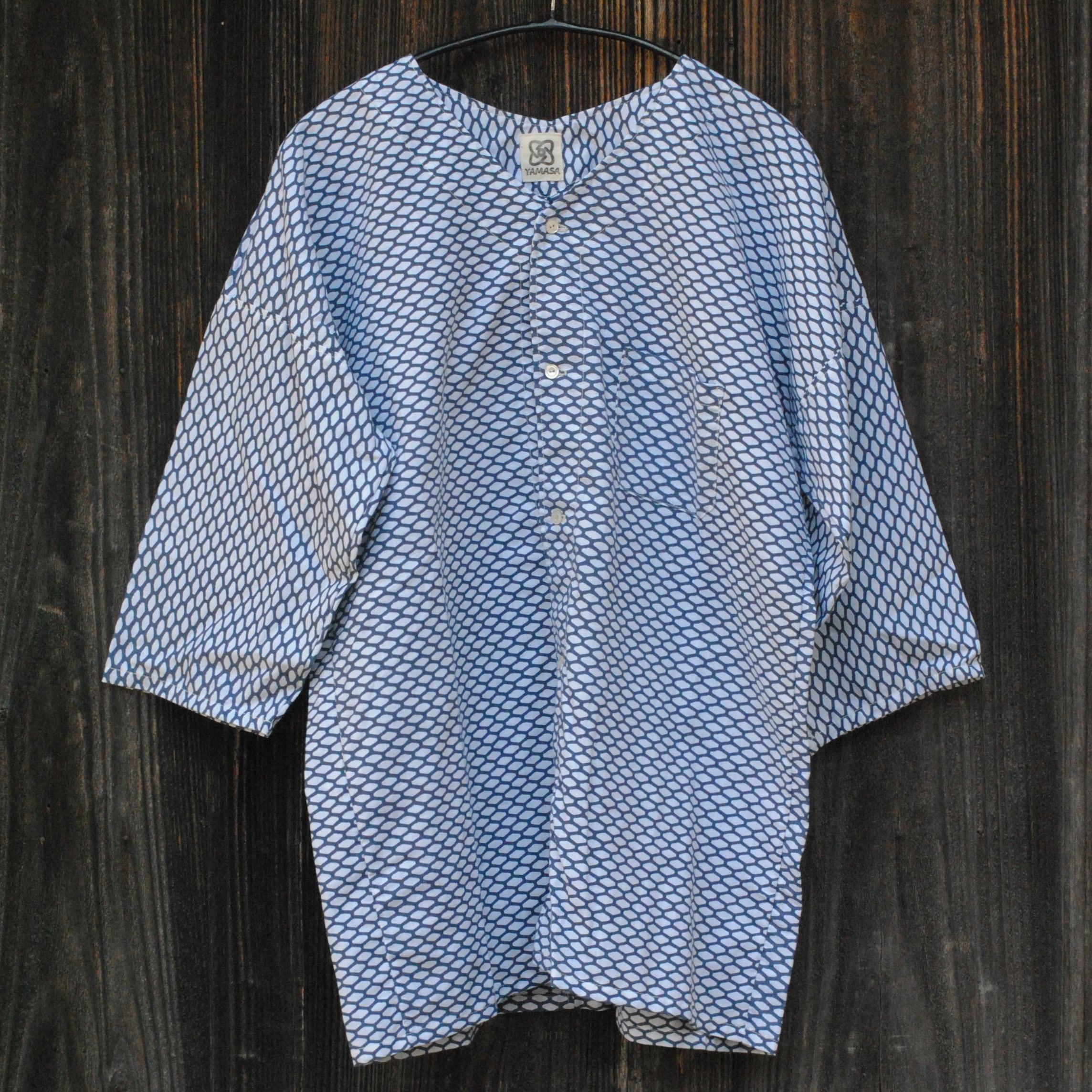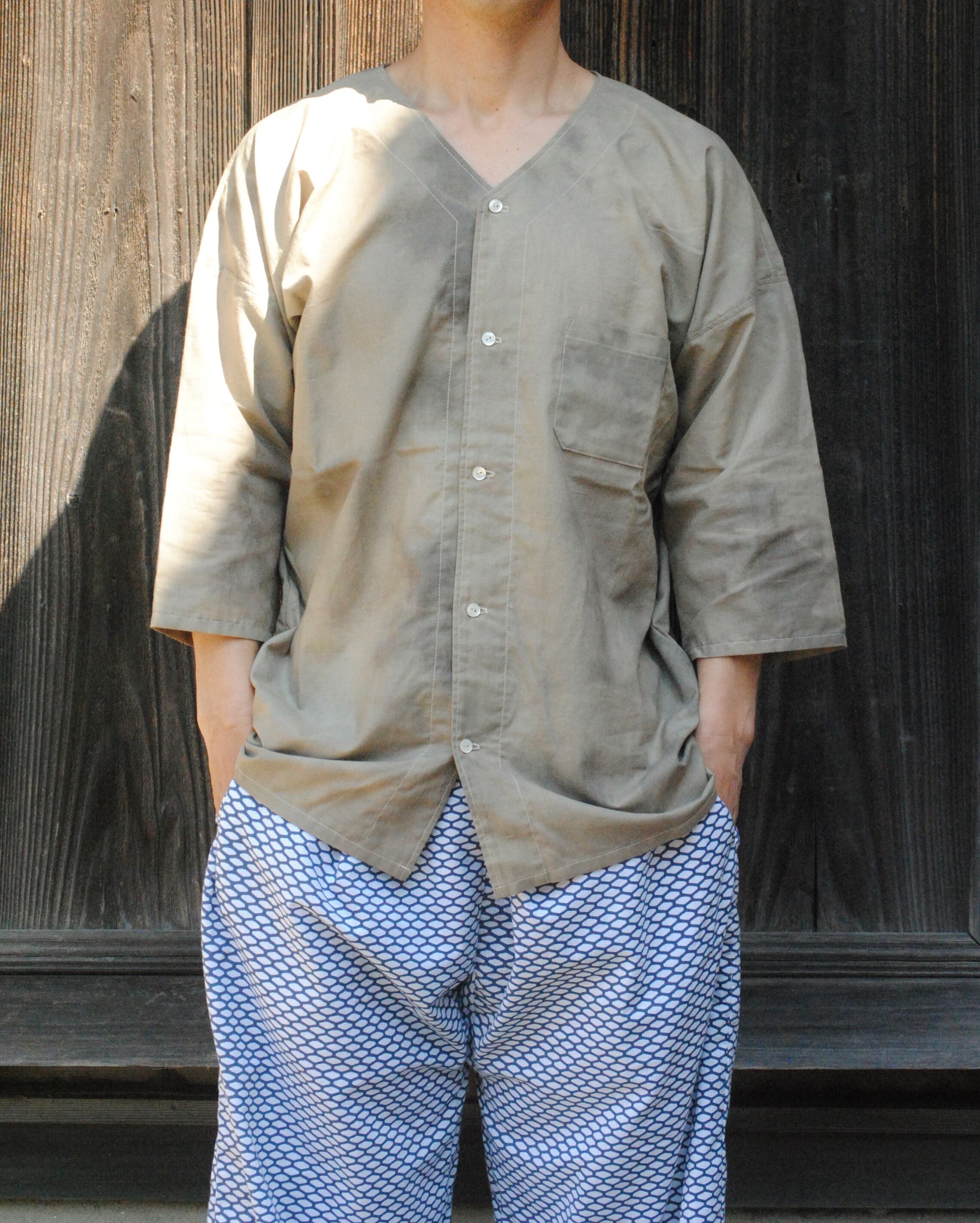 日本の祭りや庭仕事など古くから着られている鯉口シャツを、ゆるっと着用するダボシャツ寄りのデザインにして制作しました。
